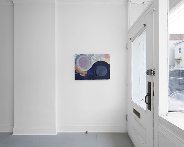 Mrs. is proud to present Relay, a two-person exhibition featuring new work by Kerri Ammirata and Emily Davidson. Both artists engage with landscape as a site of introspection—one reaching outward toward the celestial, the other turning inward to the everyday. Though their vantage points differ—Ammirata working from the macrocosm of space and Davidson from the minutiae of the urban present—they share a sensibility rooted in painterly tradition and a deep psychological inquiry.